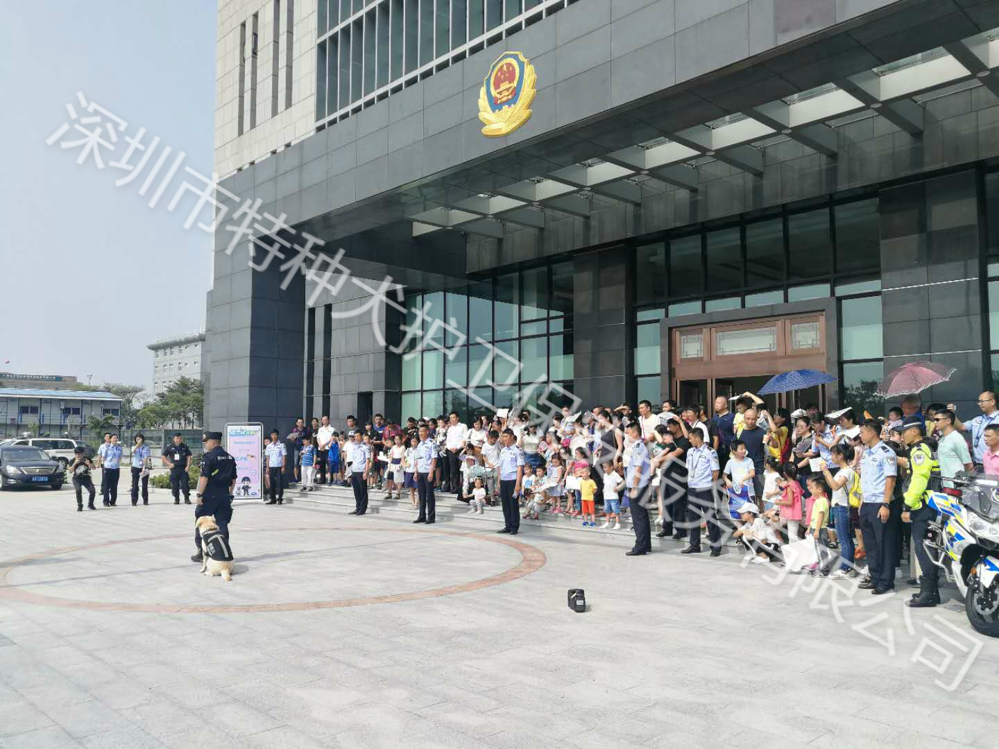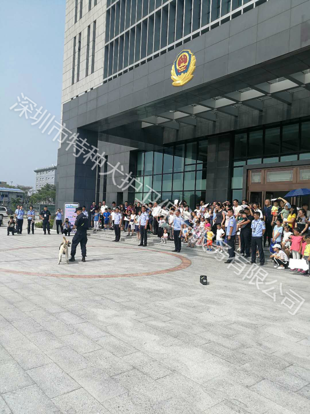 今天上午9点,广东省公安厅机场公安局举行“进警营,游机场暑期亲子活动”,我公司驻广州白云机场犬防队员受机场公安局特警支队指示参与警犬表演,接到表演指令后我司犬防队员按照机场公安局要求认真训练,进行了紧张的彩排工作。在犬防队员的不懈努力下,今天上午的表演取得圆满成功,受到了机场公安局领导和前来参观群众的一致好评,同时也展示出我公司犬防队员的专业技术风采。