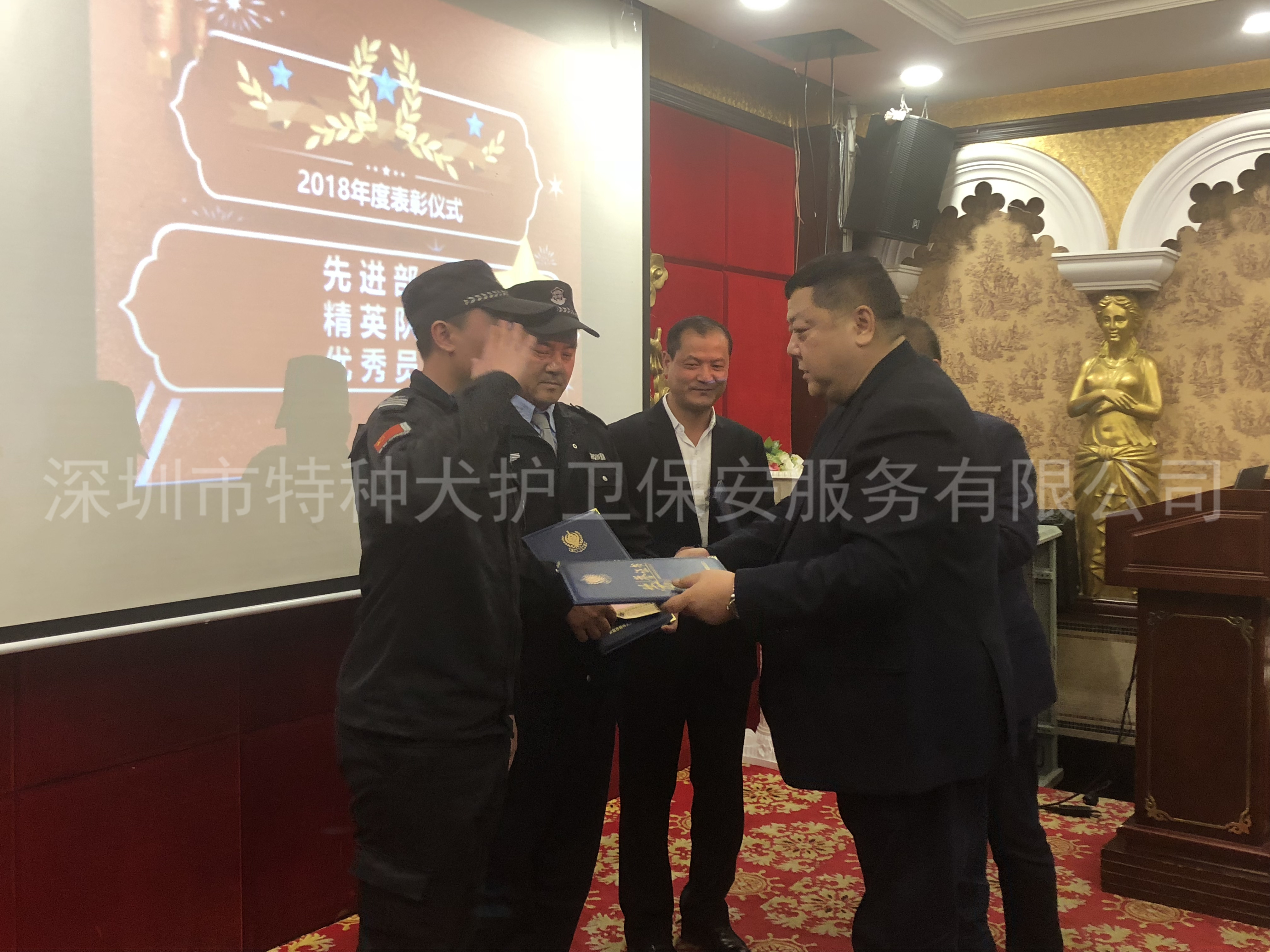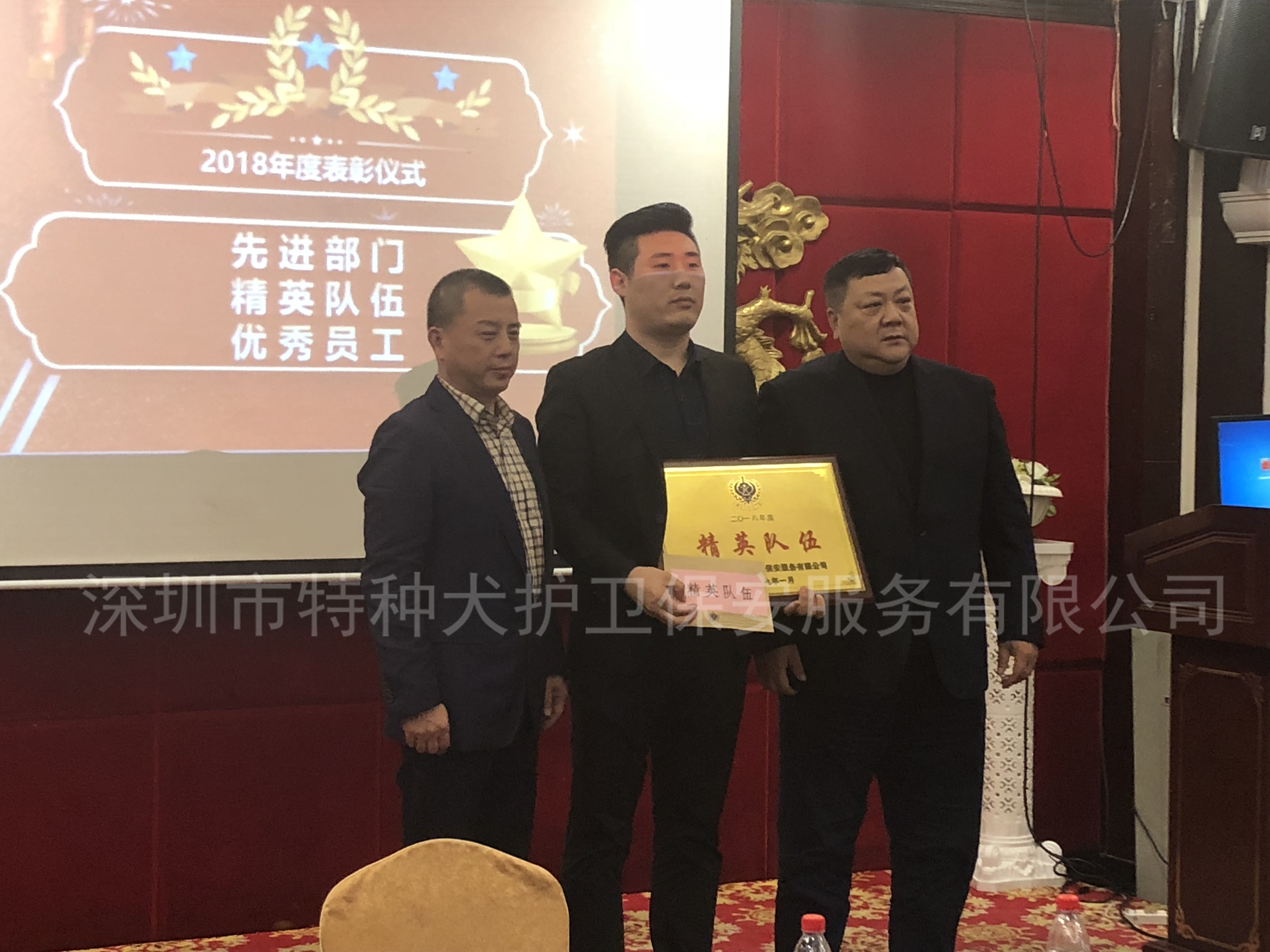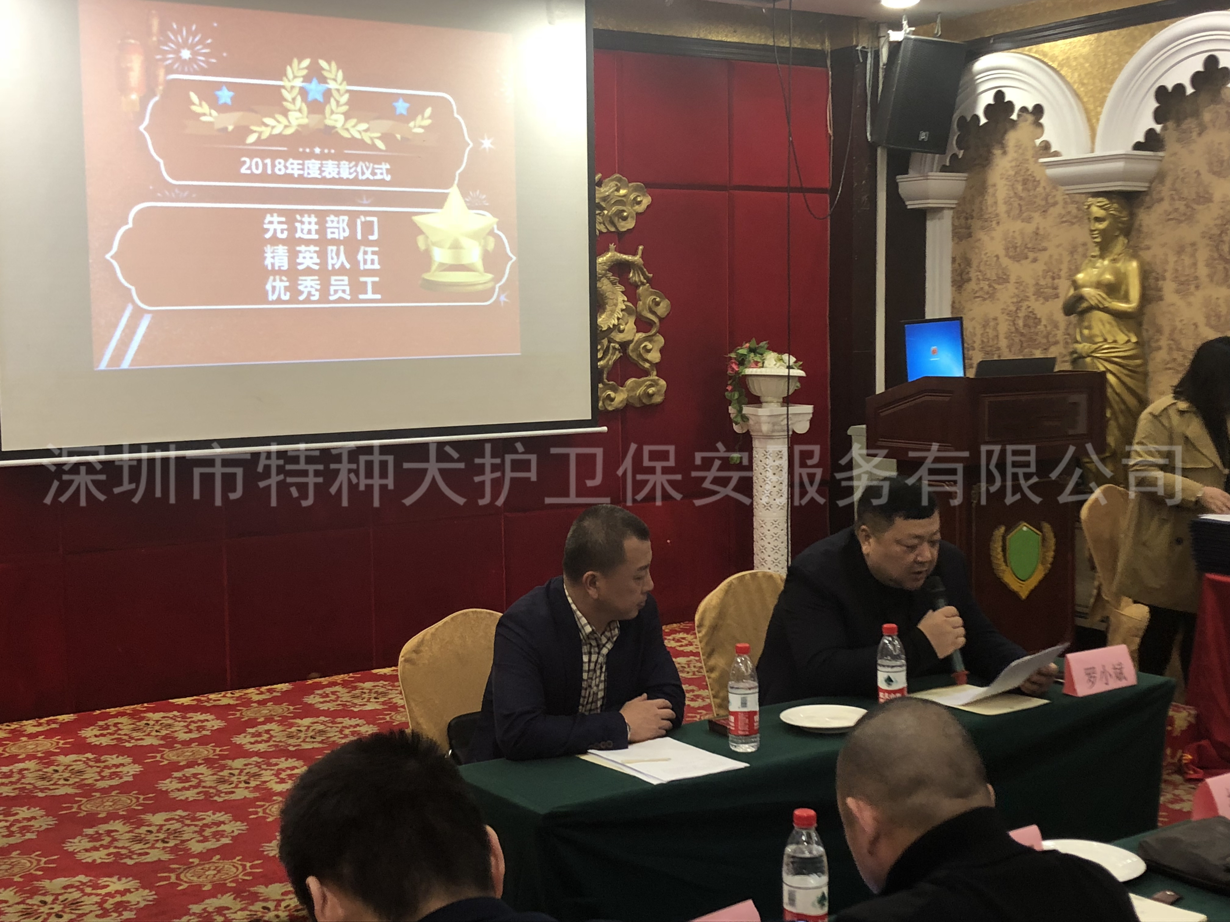 2019年1月15日,我司召开了2018年年终总结暨表彰大会。总公司全体员工、各护卫部经理及优秀保安员参加了本次会议。