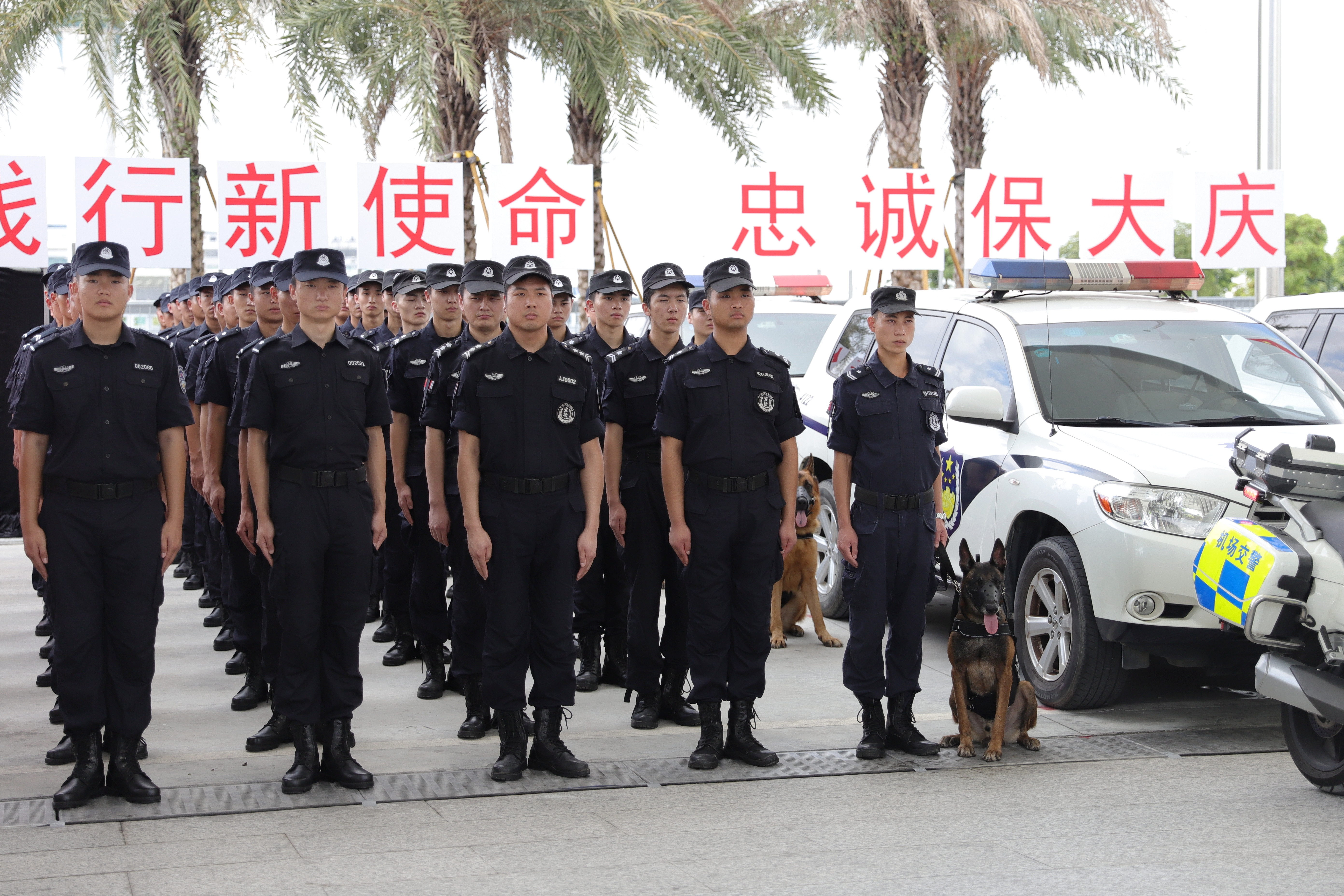 犬防队员在烈日下不惧酷暑,以饱满的精神状态完成此次誓师大会,充分体现了我司严格管理、训练有素、精诚团结的优良作风。