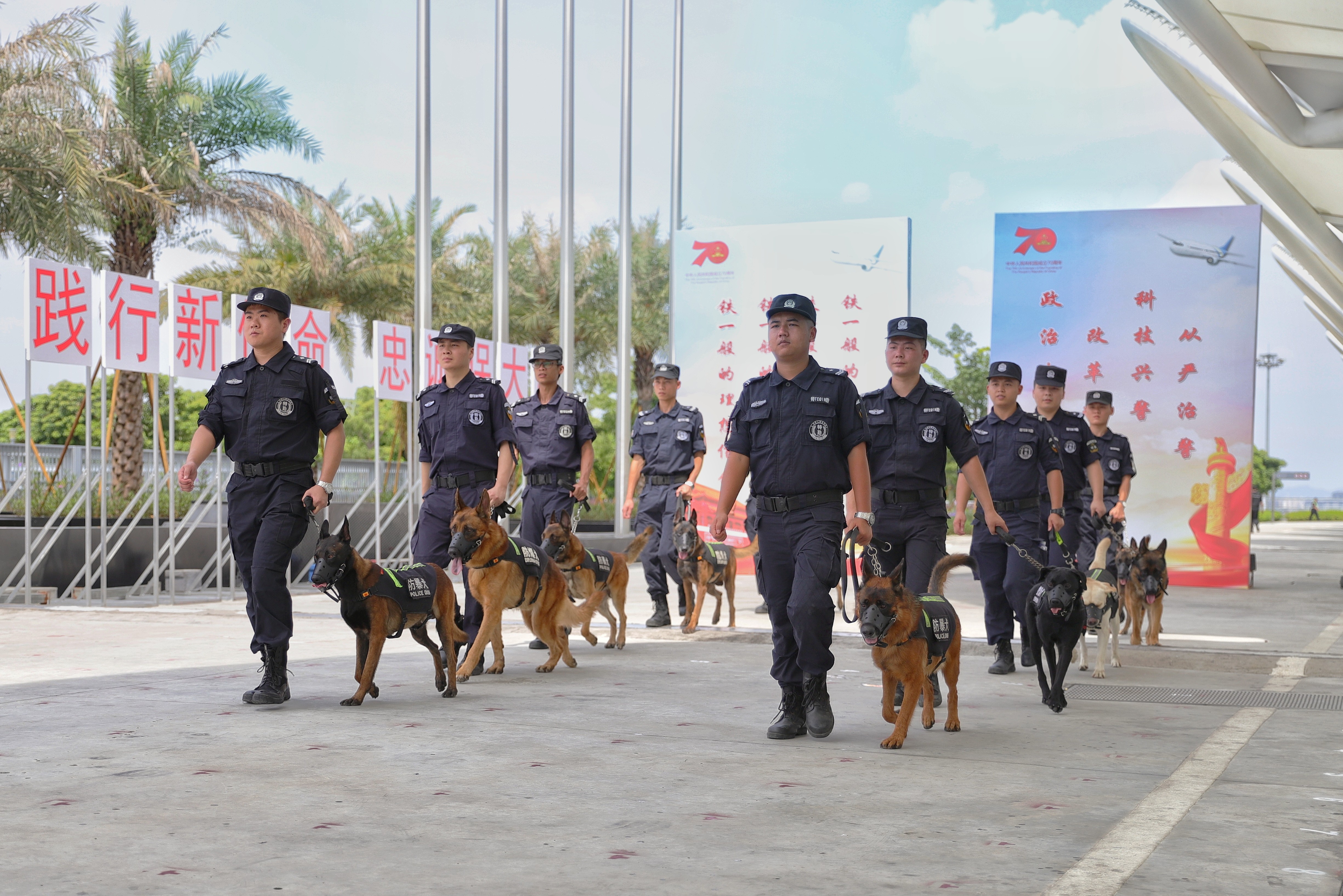 我司驻广州白云国际机场犬防中队参加广东公安机关新中国成立70周年国庆安保誓师大会暨夏季大练兵启动仪式