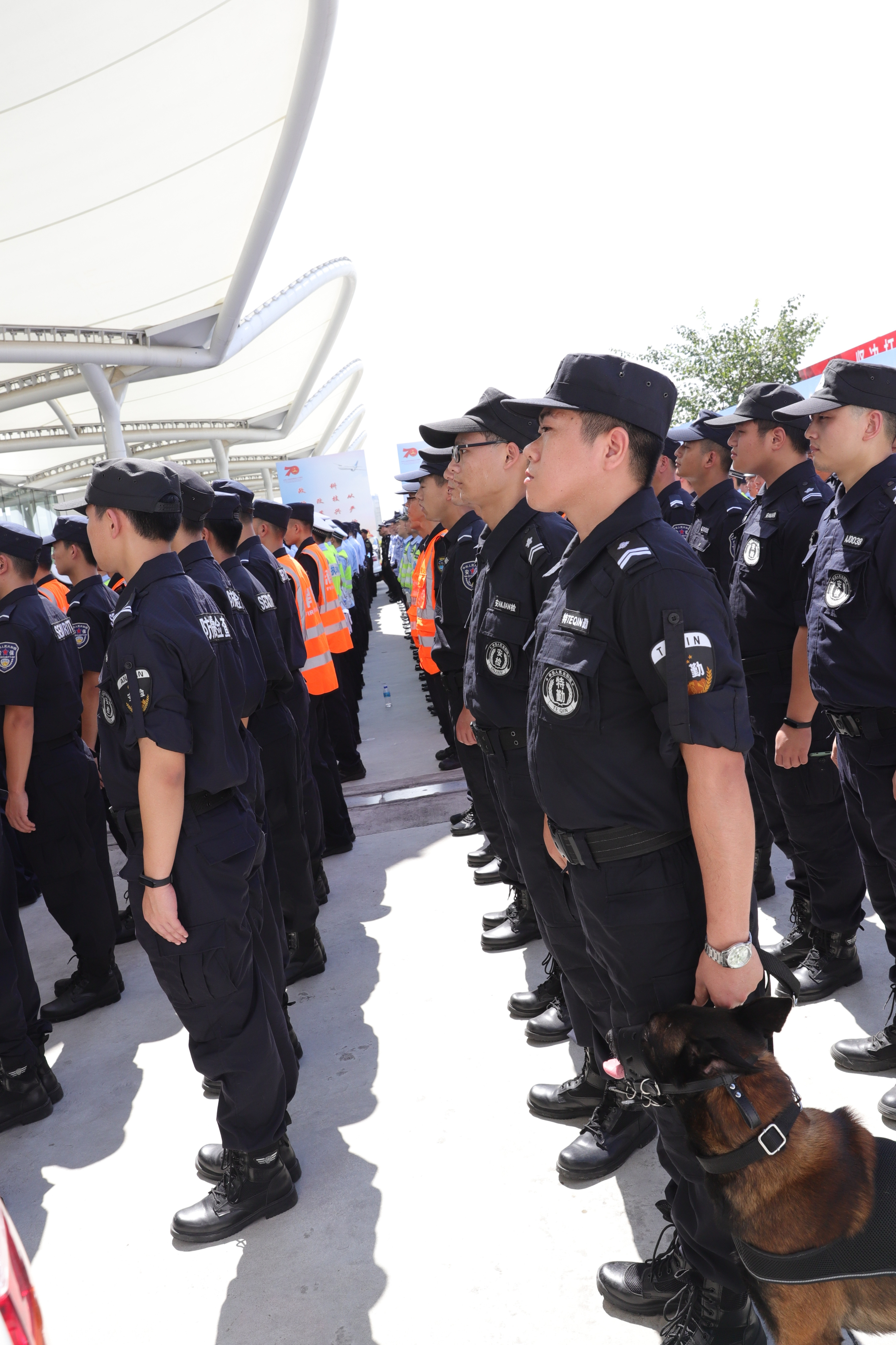 我司驻广州白云机场机场犬防中队根据机场公安局要求,派出十名队员,十只犬只参加此次誓师大会。
