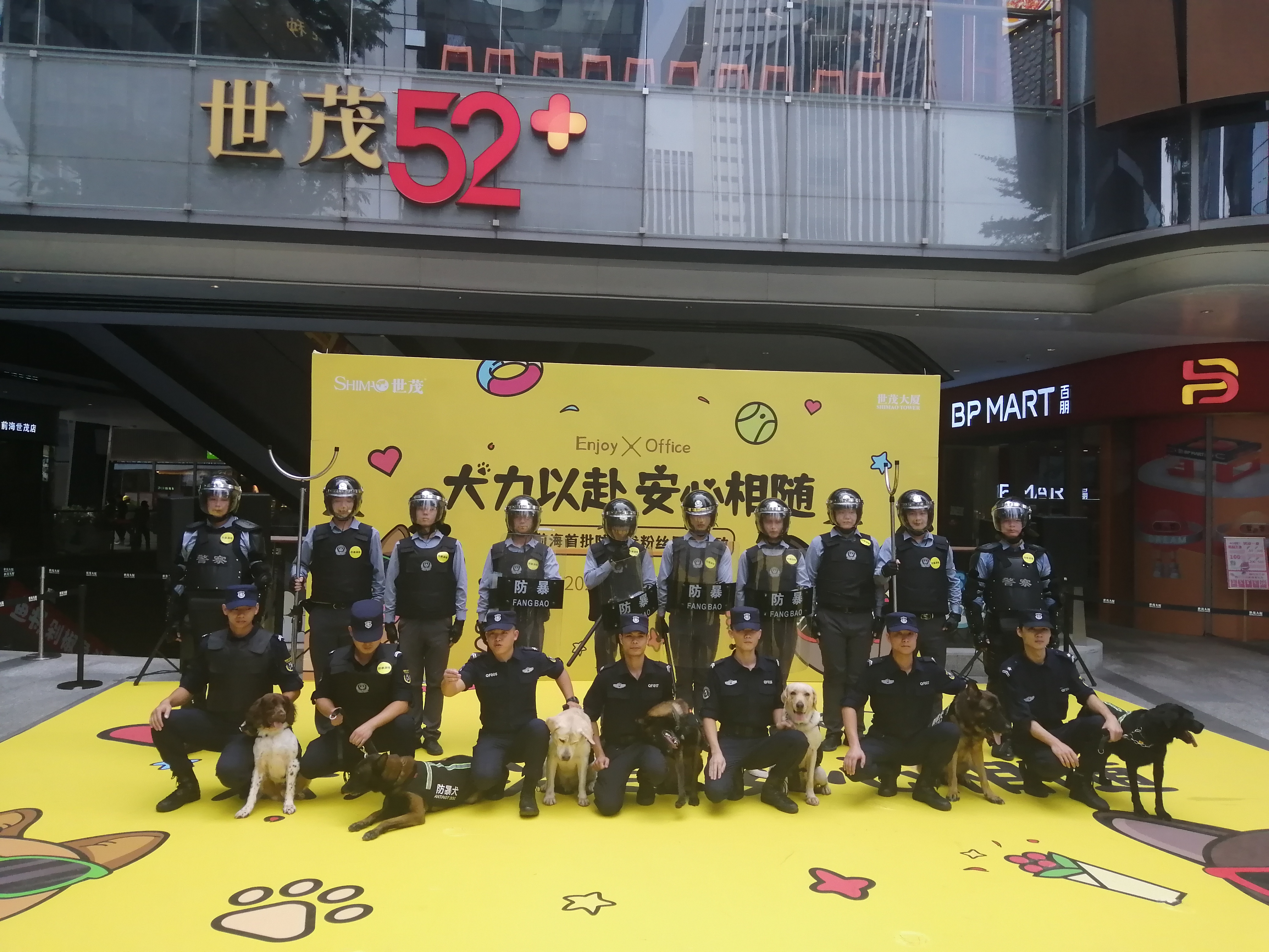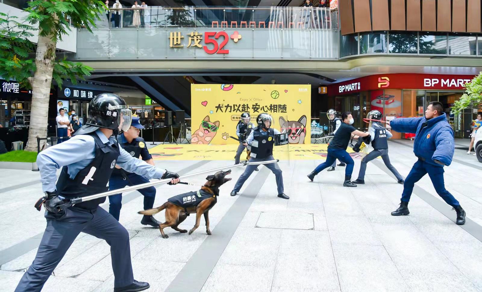 我司犬防队八月份入驻前海世茂大厦以来,受到了大厦物业和租户的一致好评,为了增加大厦租户对防暴犬的了解,让租户与防暴犬有一个近距离接触。本月中旬大厦物业专门举办了一个“犬力以赴,安心相随”首批防暴犬粉丝见面活动。我司犬防队派出7组工作犬参加此次活动,我司犬防队在活动中进行了防暴犬和搜爆犬的服从科目表演、现场搜爆演练等环节,现场掌声不断,并收获了一大批粉丝。