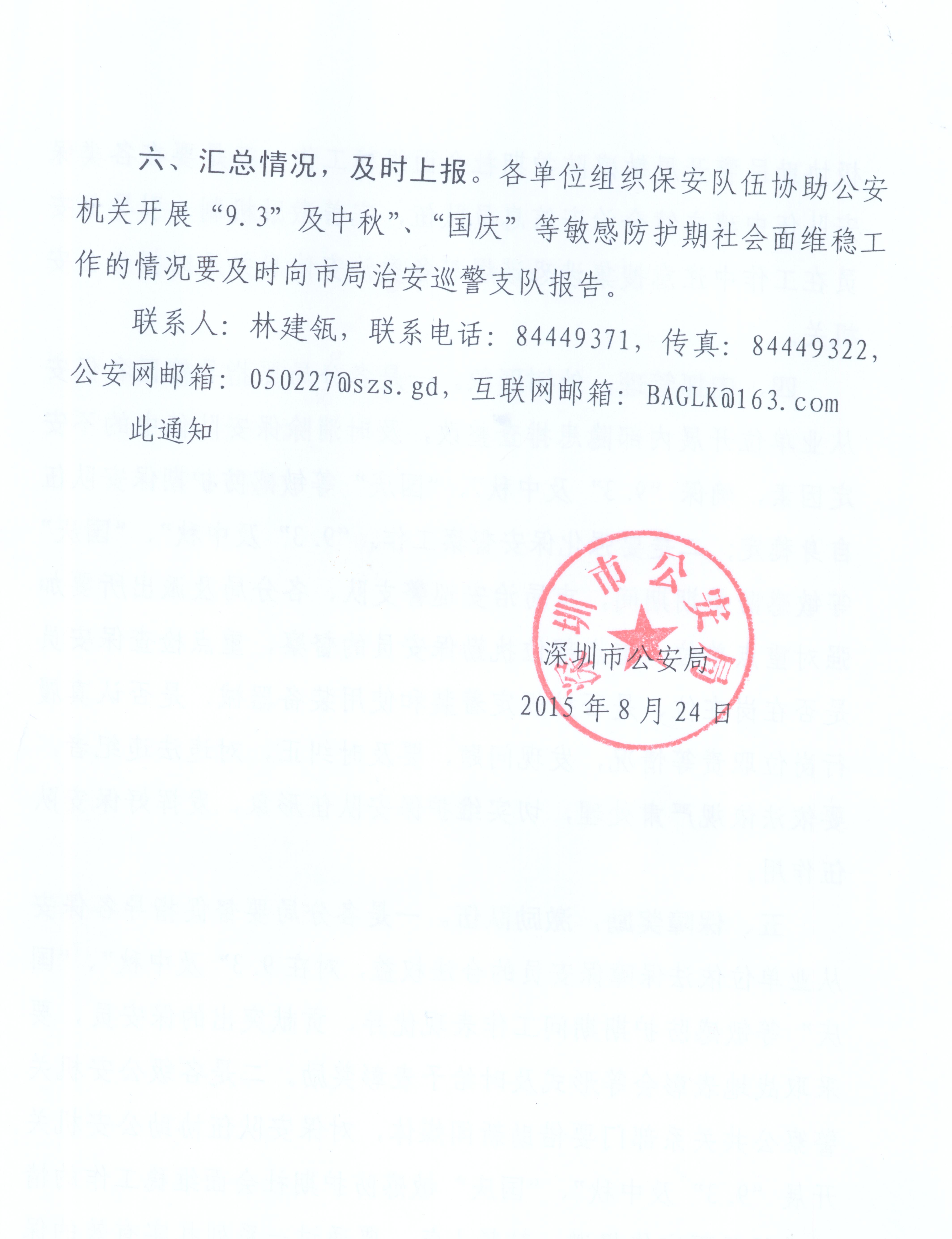 深圳市公安局关于做好‘9.3‘ ,‘中秋’,‘国庆’等维稳工作的通知