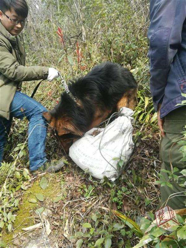 警犬找到坠崖老人 老人家属向其下跪 (转载)