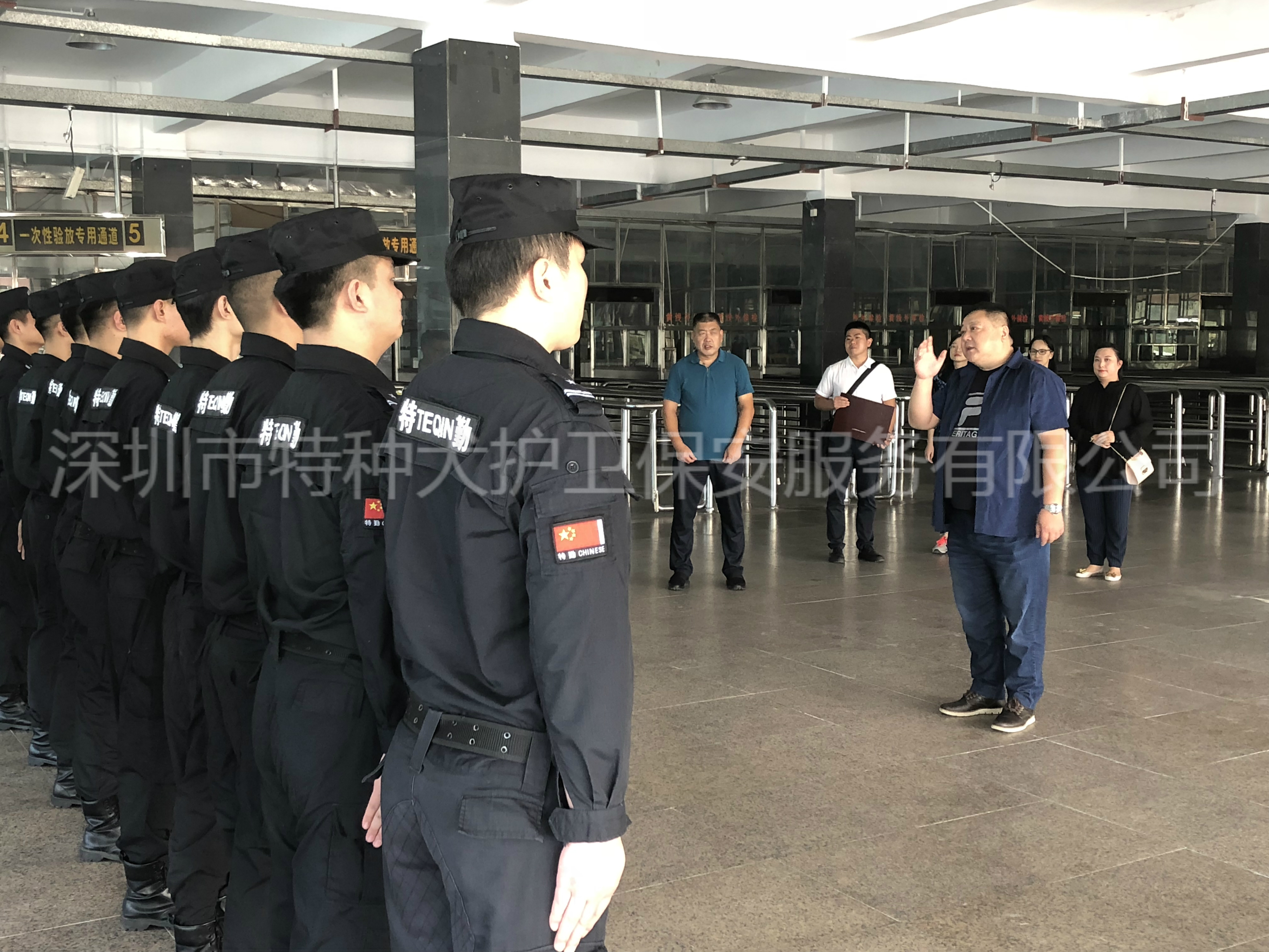 西九龙护卫点队员以过硬的素质,用他们的严格标准的训练来迎接考察队伍的到来。护卫七部经理丁江伟同志向考察队伍介绍西九龙护卫点队员后,总经理罗小斌同志与各位队员一一握手并致以亲切的慰问。